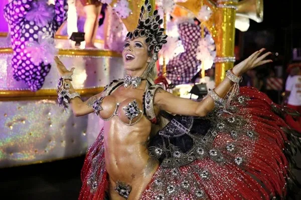 purpurina e tapa-sexo de 7cm, a modelo é musa da vermelho e branco de São