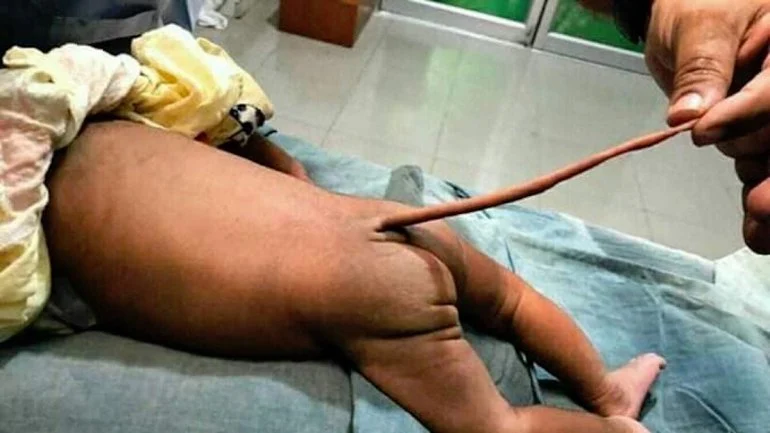 sociais desde o mês passado. A criança nasceu com uma cauda de 13